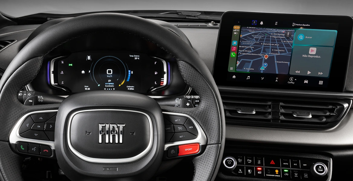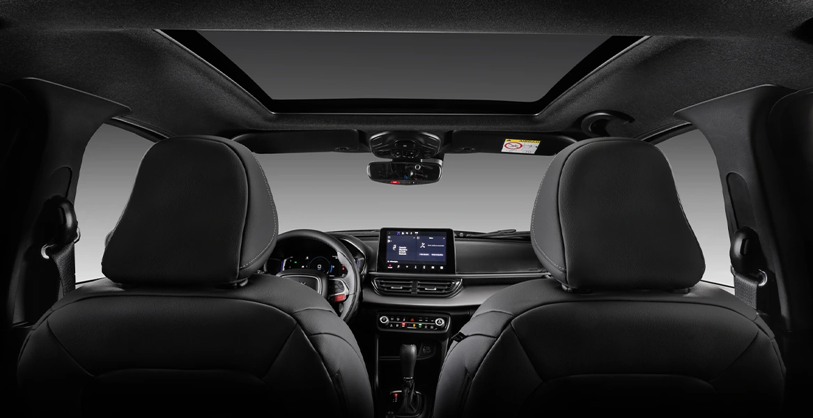 • Central multimídia com tela de 8,4" touchscreen, Apple Car Play e Android Auto wireless, Comandos de Voz, Bluetooth, MP3, Rádio AM/FM, Porta USB (2): USB Tipo A e Tipo C.